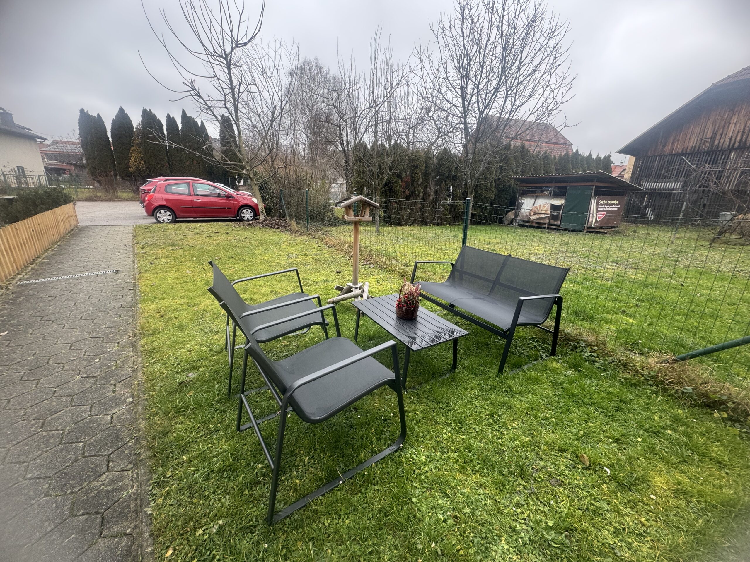 - Zelena površina / zelenica pred stavbo, primerna za ureditev vrta, prostora za druženje ali sprostitev